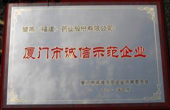 “2008 —2009年度廈門誠信示范企業”是廈門首個誠信企業評選活動。本活動由廈門市誠信促進會、廈門市企業和企業家聯合會、各級政府機關等28個相關部門聯合開展,組委會本著“公開、公正、公平”的原則首次在全市范圍內共同開展誠信示范企業的評選。經過一系列激烈的競爭及組委會的嚴格評選,本企業最終獲得了 “2008—2009年度廈門市誠信示范企業”的榮譽稱號。