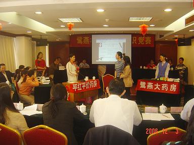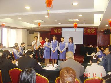 廈門(mén)鷺燕大藥房有限公司于2006年12月3日在廈門(mén)廬山大酒樓隆重舉行鷺燕杯首屆工會(huì)知識(shí)競(jìng)賽,此次工會(huì)知識(shí)競(jìng)賽由6個(gè)工會(huì)小組各自選派4名選手參加,比賽環(huán)節(jié)包括團(tuán)隊(duì)介紹、啦啦隊(duì)互動(dòng)、演講比賽、必答題、搶答題、猜詞秀、才藝表演等,形式多樣、內(nèi)容豐富。比賽現(xiàn)場(chǎng)還邀請(qǐng)了一些供應(yīng)商的代表作為嘉賓評(píng)委,為比賽進(jìn)行現(xiàn)場(chǎng)點(diǎn)評(píng)及頒獎(jiǎng)。