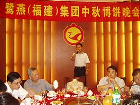 2007年9月21日,在一年一度的中秋佳節前夜,廈門白鷺賓館宴會廳內一派喜氣洋洋,鷺燕集團攜旗下廈門鷺燕醫藥有限公司、廈門鷺燕大藥房有限公司、廈門鷺燕醫療器械有限公司、廈門鷺燕制藥有限公司的廈門地區300多名員工歡聚一堂,共慶中秋佳節。集團董事長兼總裁吳金祥先生發表了熱情洋溢的賀辭,表達了對廣大員工的誠摯謝意,并展望了公司良好的發展前景。席間,集團各公司的領導還親自向各桌員工祝酒—感謝大家長期以來對鷺燕集團的發展壯大所做出的貢獻。